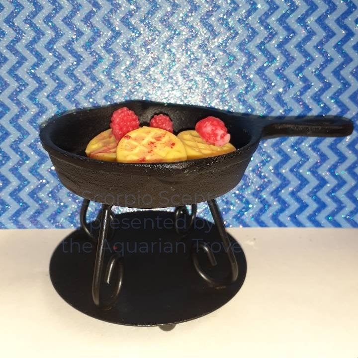 Introducing our charming Mini Cast Iron Skillet Wax Warmer, the perfect blend of rustic elegance and functionality. This delightful piece is more than just a decorative accent; it’s a practical addition to any space, designed to infuse your home with delightful aromas. Crafted to resemble a classic cast iron skillet, it adds a touch of farmhouse charm to your decor. Simply place your favorite wax melts in the skillet, light a tealight candle underneath, and let the subtle warmth release inviting fragrances throughout your room. Ideal for small spaces, it's perfect for creating a cozy atmosphere in your kitchen, living room, or bathroom. Whether you're looking to enhance your own home or find a thoughtful gift for a loved one, this mini wax warmer is a delightful choice.