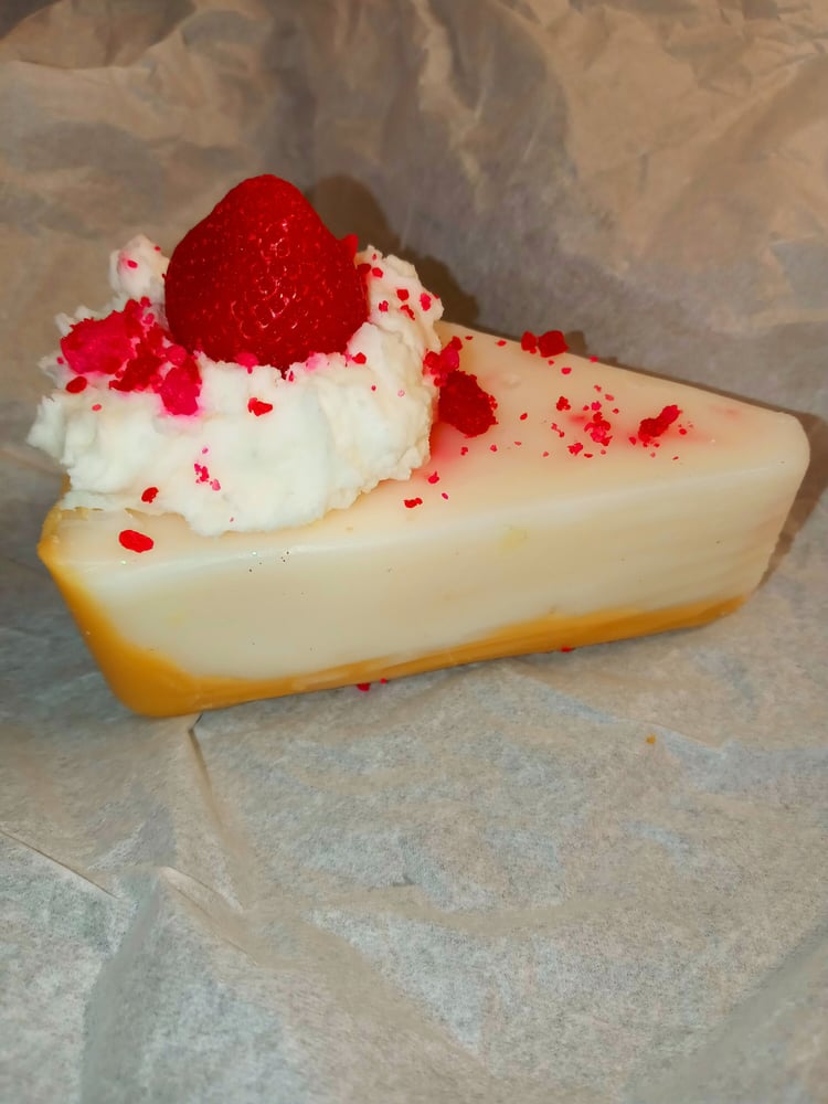 This listing is for a strawberry cheesecake slice wax melt. It can be placed on a large warmer or sliced into smaller pieces for multiple uses. It is also a great conversation piece and/or unique item to have out for home viewings.